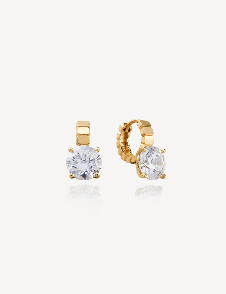 The perfectly shaped Rotor Round 1.5 Carat Earrings feature 1.5ct clear round lab-grown diamonds with square edge metal accents, completing a chic style. These 1.5ct mini earrings, full of brilliance, match any outfit and are certified by the International Gemological Institute (IGI) and are part of the Rotor collection.