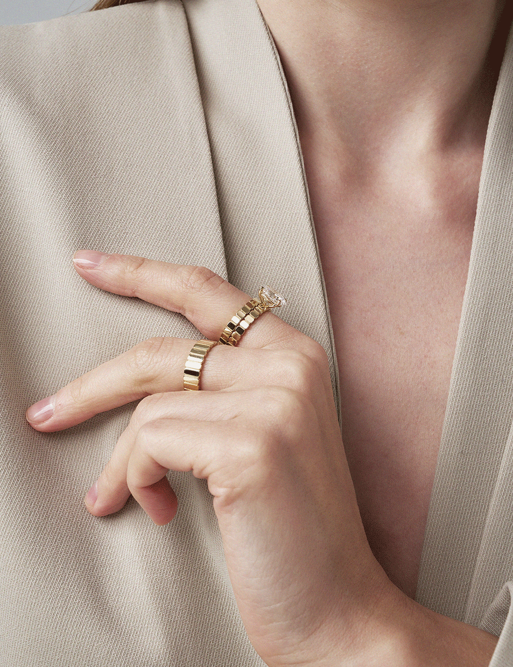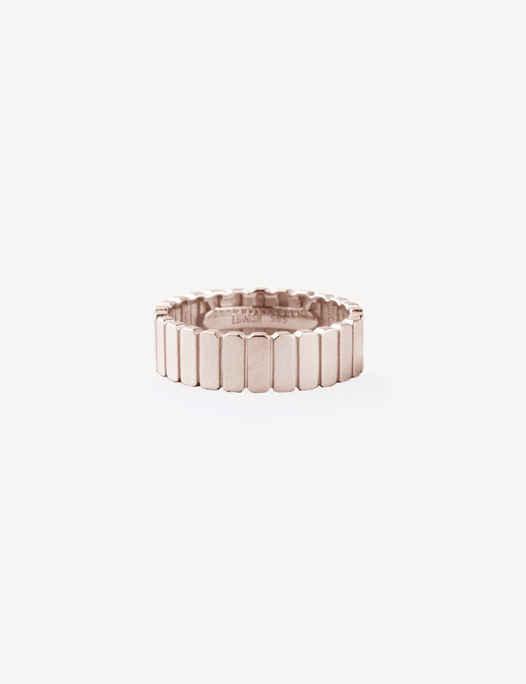 The Rotor Series, featuring a chic style with its square edge banding design, can be worn by both men and women and represents the classic ring of EBINISH. Wear it alone or stack it with the Rotor Carat Series for a more attractive item.