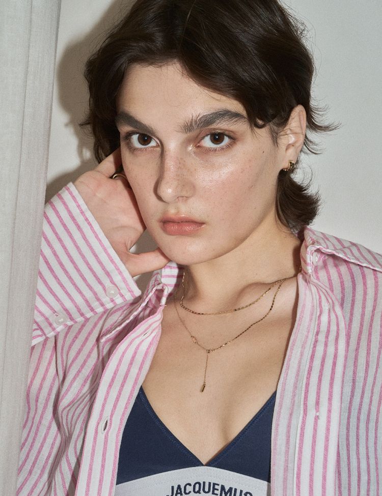 Made from EBINISH's own Y-shape double chain, it's an 'interlocking plat' necklace with a simple silhouette and a modern touch. It goes perfectly with any metal material, Style it in the shape of the length you want.
