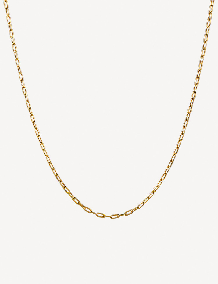 The clip chain, created with very intricate and delicate patterns, is connected with thin links, giving it a more sophisticated feel than typical daily chain designs and creating a streamlined styling. Wear it alone or layer it with other necklaces or the Rived or Solar pendant.