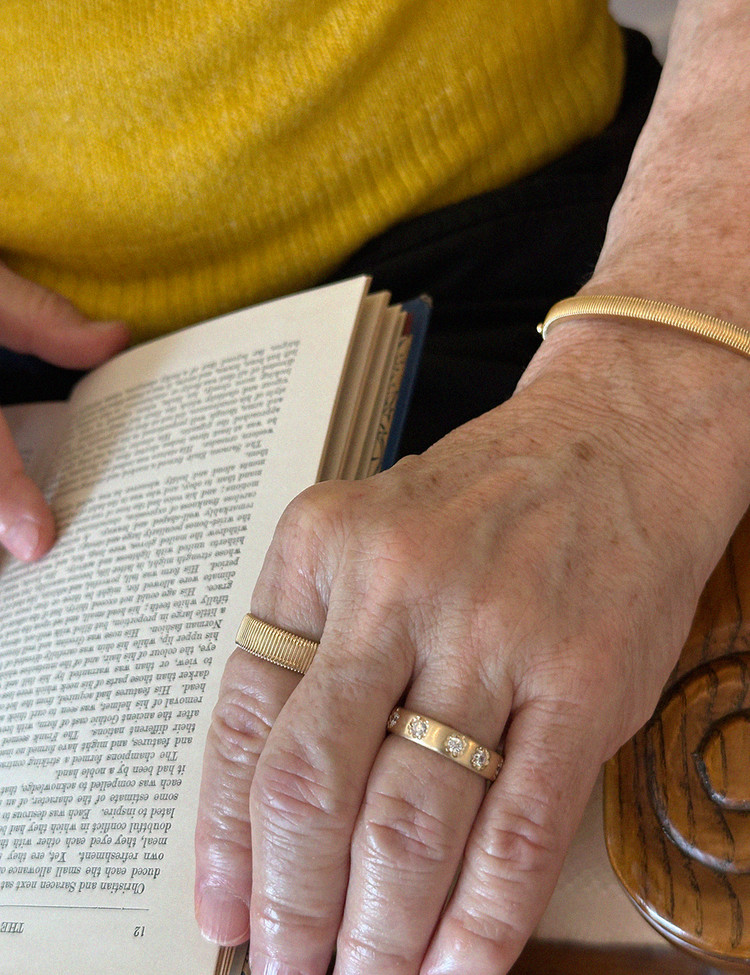 클래식스타일과 컨템퍼러리 스타일이 아름답게 결합된 리비드 뱅글은 EBINISH 'Ribbed' 컬렉션의 뱅글 디자인입니다.이중 잠금장치와 힌지 메커니즘을 갖추고 있어 착용이 용이하며 포인트 아이템으로 적합한 타임리스 아이템입니다. EBINISH의 다른뱅글이나 브레이슬릿 또는 시계와의 아름다운 조화를 이루어 트렌디한 스택 룩을 연출을 추천합니다.