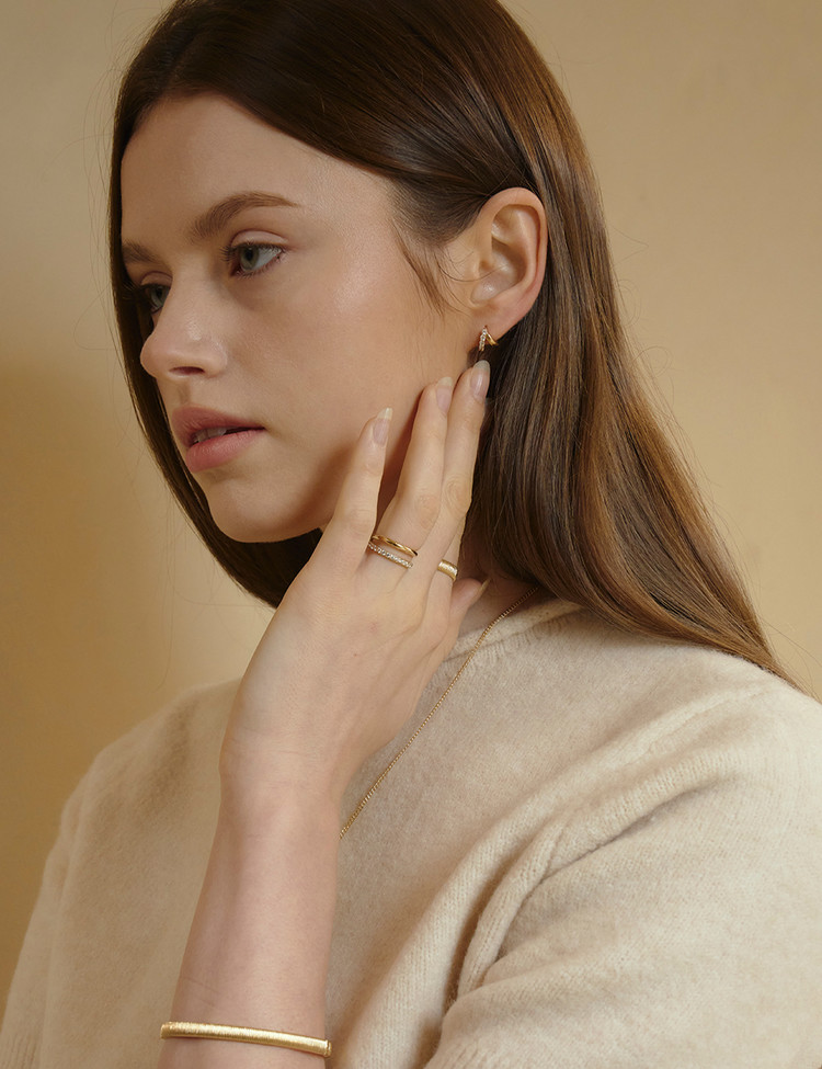 The EBINISH Duet Series, blending basic design with a sharp edge, offers a refined style unique to EBINISH. Meticulously engineered for the best fit, it wraps the body comfortably while exuding elegance. These earrings, with their layered effect, allow for versatile styling.