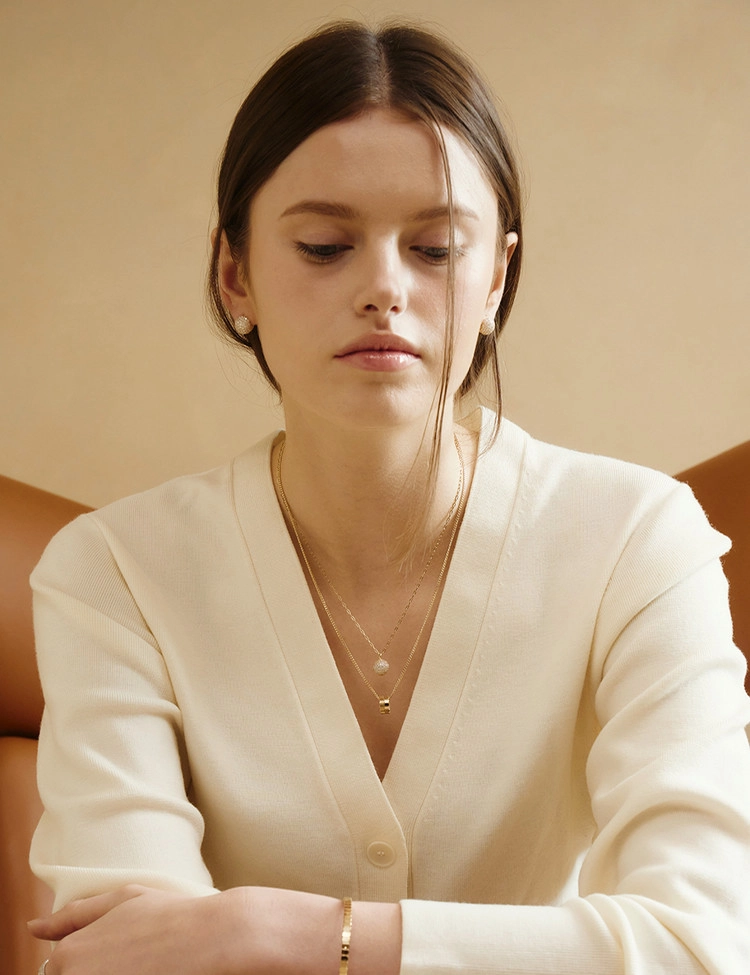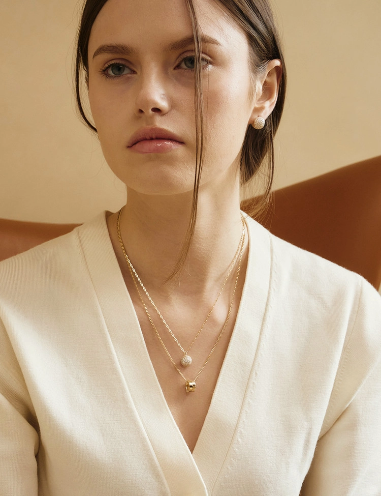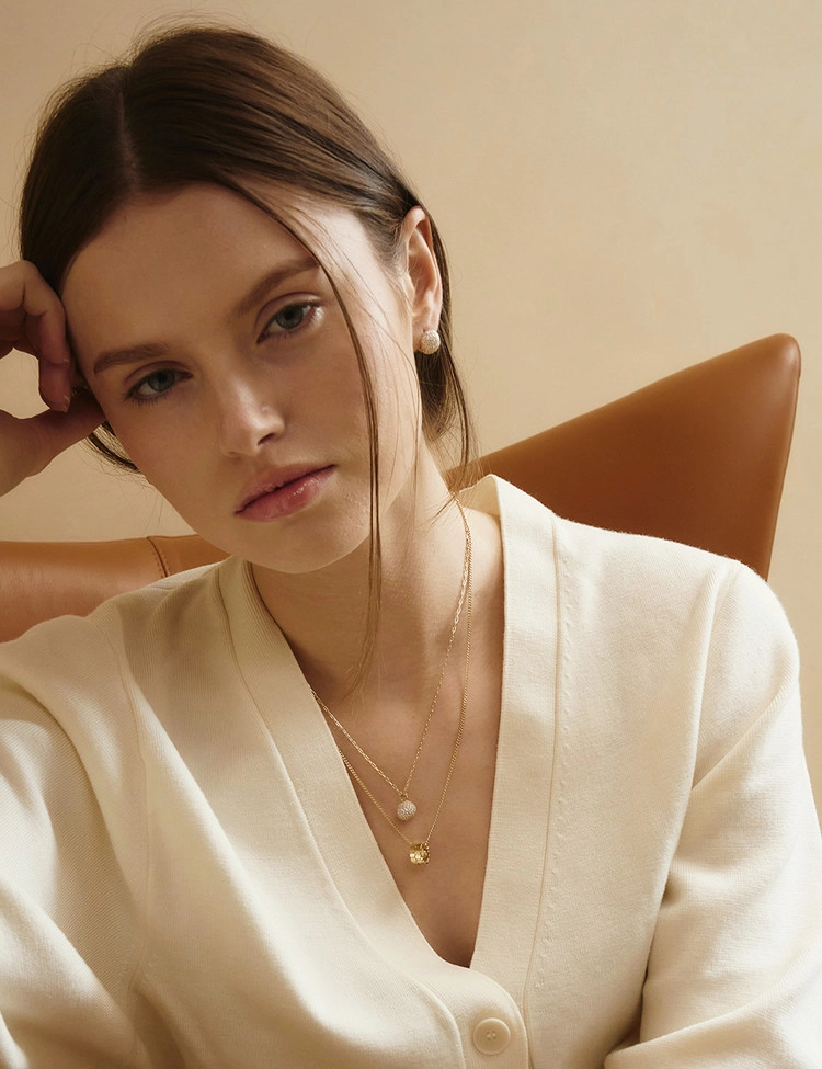 다양한 사이즈의 스톤의 오프셋 파베 세팅을 통해 구체의 중심을 강조하여 제작되었습니다.이러한 배열은 빛의 반사를 극대화해 반짝임이 더 풍부하게 느껴지며, 디자인에 동적인 느낌을 더해줍니다. 화사하지만 차분하게 멋을 낼 수 있는 방식으로, 고급스러우면서도 독창적인 스타일을 선호하는 여성들에게 인기가 많습니다.