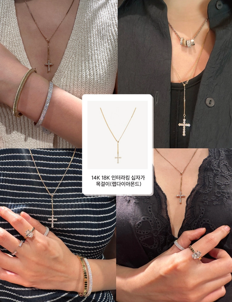 14K 18K 인터라킹 십자가 목걸이(랩다이아몬드)