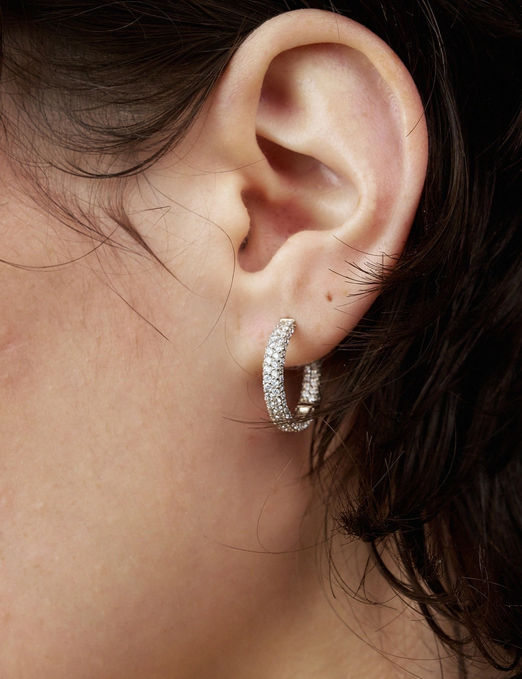 한층 슬림하고 우아한 실루엣으로 탄생한 후프 이어링으로 착용시 안쪽면까지 모이사나이트가 정교하게 파베 세팅되어 360도로 눈부신 광채를 자랑하는 솔라(Solar) 시리즈 2W 후프 이어링입니다. 동양인의 얼굴형에 맞춰 섬세하게 고안된 데일리 사이즈로 미니멀한 디자인 속 고급스러움이 은은히 드러납니다.착용할수록 일상 속 자연스러운 빛을 품어내며, 움직일 때마다 부드럽게 빛나는 입체적이고 감각적인 무드를 완성해 줍니다.단독 착용만으로도 충분히 존재감을 발휘하고, 다른 주얼리와 레이어링하면 한층 풍성하고 세련된 스타일을 연출할 수 있는 아이템입니다.