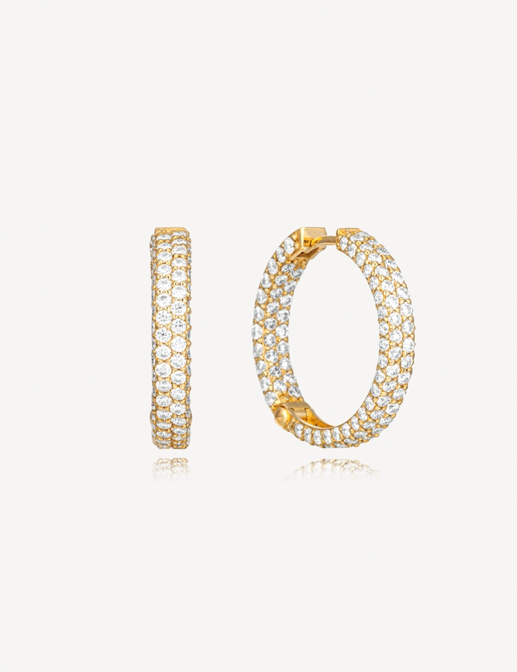 Sleek and refined, the Solar 2W Hoop Earrings feature lab-grown diamonds (or moissanite) pavé-set 360 degrees — including along the inner rim — creating a captivating all-around shine. Designed with an Asian fit for everyday wear, they offer a subtle glow with every movement. Perfect on their own or layered with other pieces for a chic, modern aesthetic.