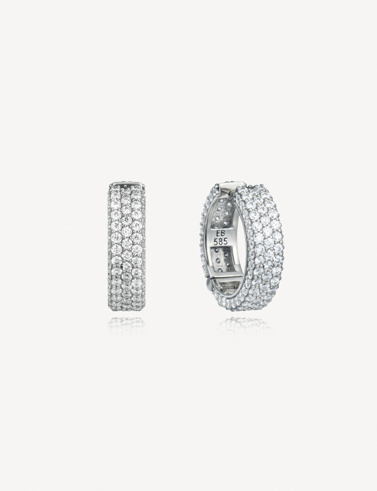 Brilliantly set with over 330 stones in a full 360-degree pavé, the Solar Hoop Earrings embrace the face with soft light and rich volume. Three lavish rows of stones cover every visible surface — inside and out — for a radiant glow that catches the eye from every angle. Available in three sizes to suit any occasion, they pair beautifully with other Solar and Livid styles to create a modern and luxurious layered look.