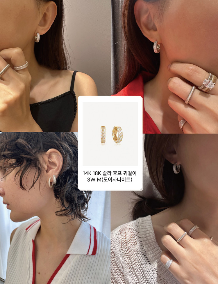 14k 18k 솔라 후프 귀걸이 3W M(모이사나이트)