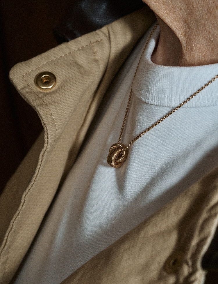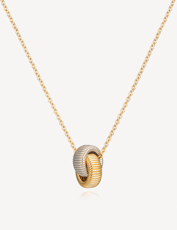 The ribbed band motif of the Livid Double Necklace catches the light and adds a distinctive character with its two-tone metal combination. Perfect for layering — wear it solo for an effortless glow or pair with other pieces from the Livid series for a richer, more elevated style.