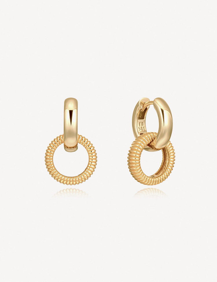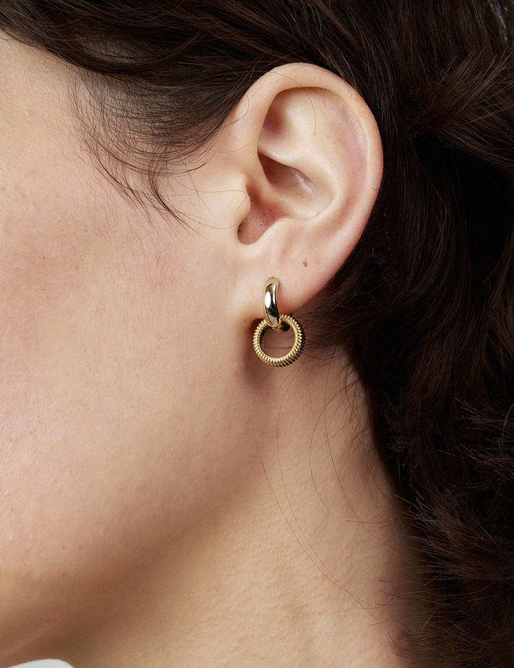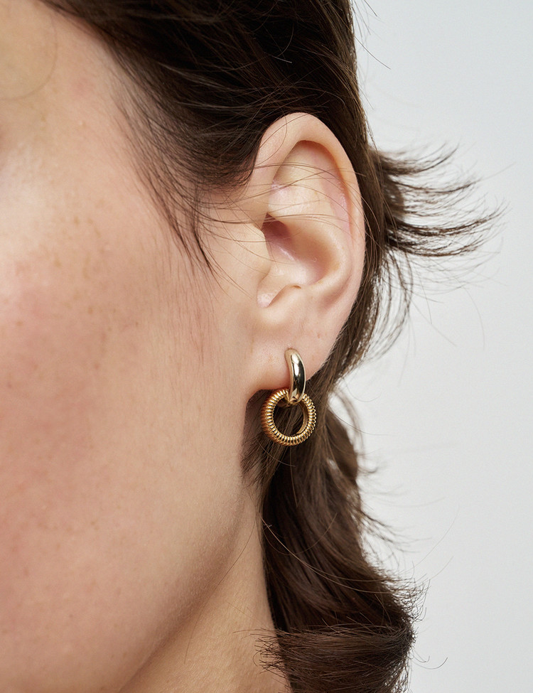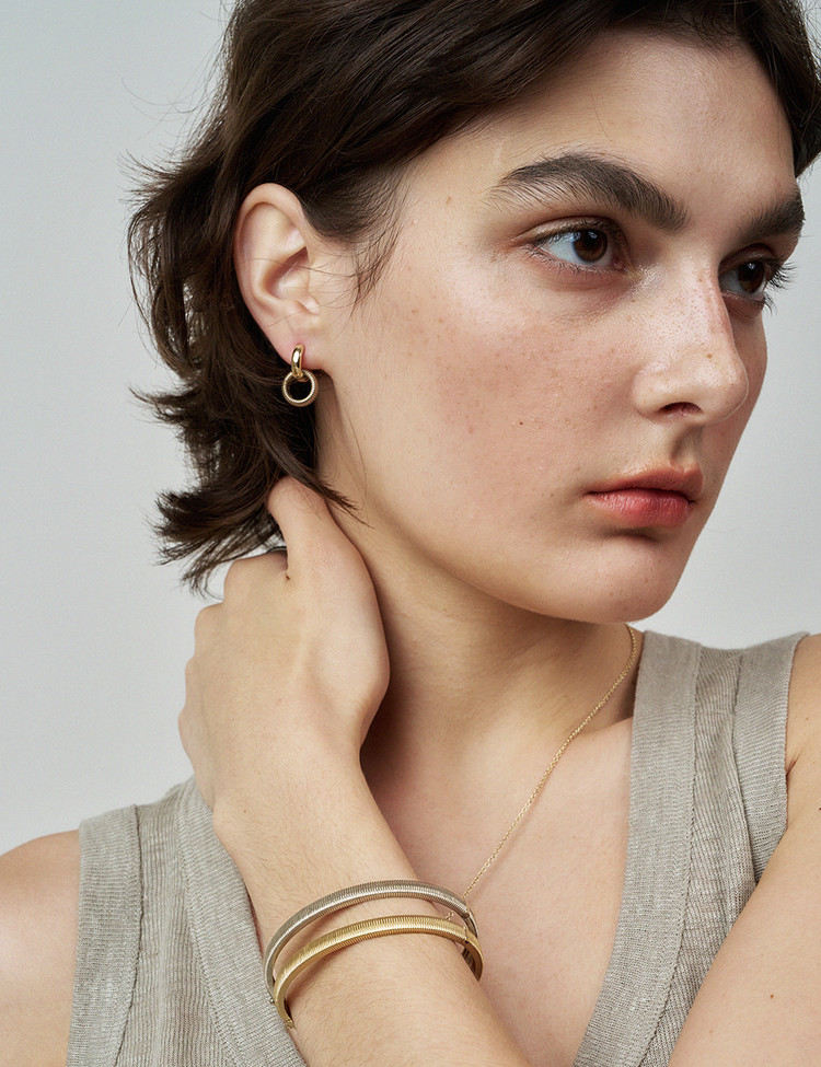 With its minimalist structure, the Ribbed Reversible Earring can be styled as a single hoop by separating the links, or worn as a bold double hoop when connected. You can also mix and match each side for an eye-catching asymmetrical look. Crafted with exquisite attention to detail, the Ribbed Link Earring catches the light with every movement, showcasing the deep-reflection shine unique to the ribbed finish. Create your own signature combination — it’s sure to become a favorite daily accessory.