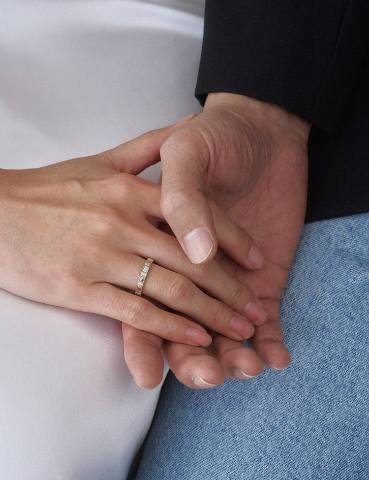 The Serenade series expresses vintage romance through refined, rhythmic patterns. An emerald-cut diamond captures restrained brilliance and deep emotion, while the surrounding roulette detail completes its timeless, classic mood. Chosen for meaning over trend, it holds a love meant to last.