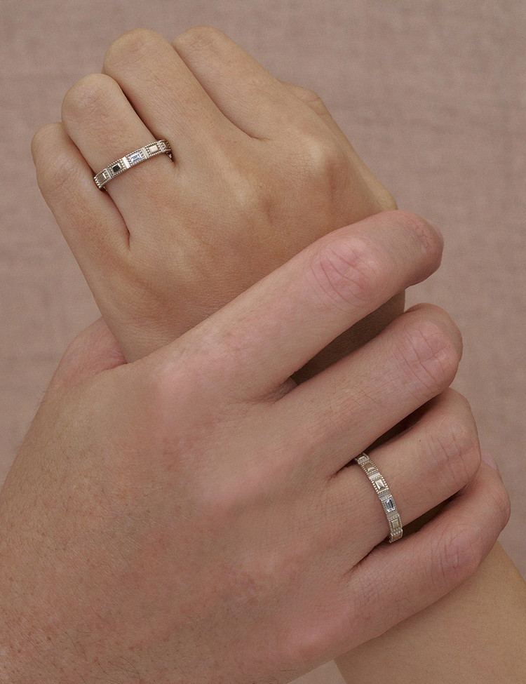 빈티지한 분위기를 섬세한 패턴으로 풀어낸 세레나데 시리즈는 규칙적으로 이어진 디테일을 사랑의 리듬으로 시각화하였습니다. 셋팅된 에메랄드 컷 다이아몬드는 절제된 반짝임으로 깊은 감정을 담아내었으며, 다이아를 둘러싼 롤렛 패턴은 세레나데 특유의 클래식함을 섬세하게 완성합니다.