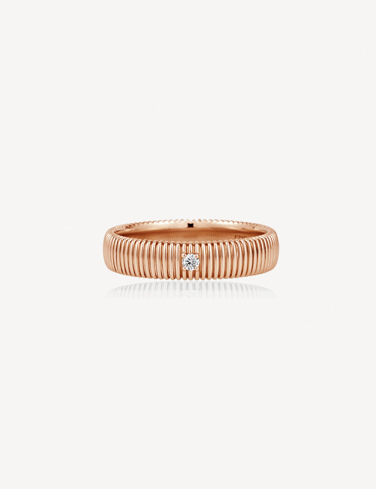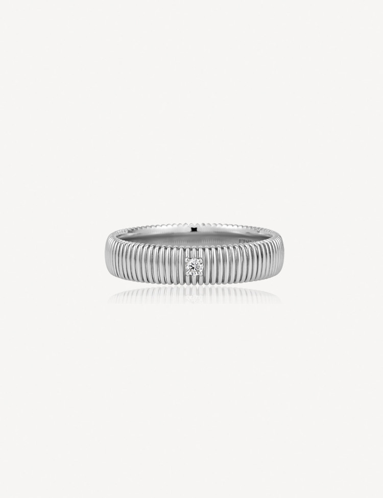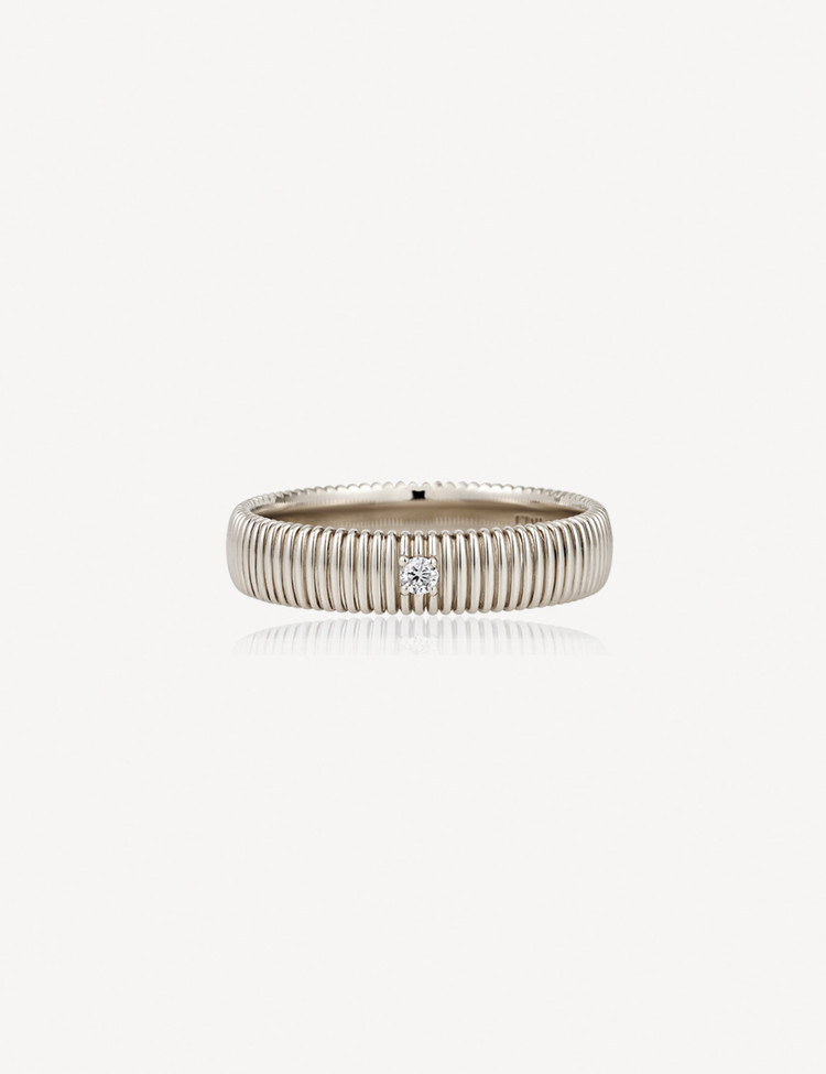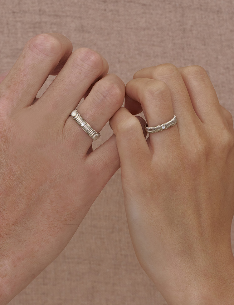 Ribbed Mark is inspired by love layered over time, offering diamonds in multiple size options for a personal choice. A lowered setting keeps the design modern and wearable, pairing naturally with both casual and formal looks.