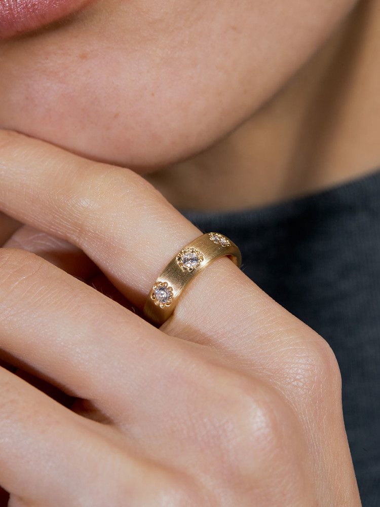 이비니시만의 핸드크래프트 스톤터치 기법을 통해 제작된 밴드링으로 우아한 자태의 디자인입니다. 매트하게 폴리싱 된 밴드가 매력적이며 볼드한 핏을 자랑합니다.