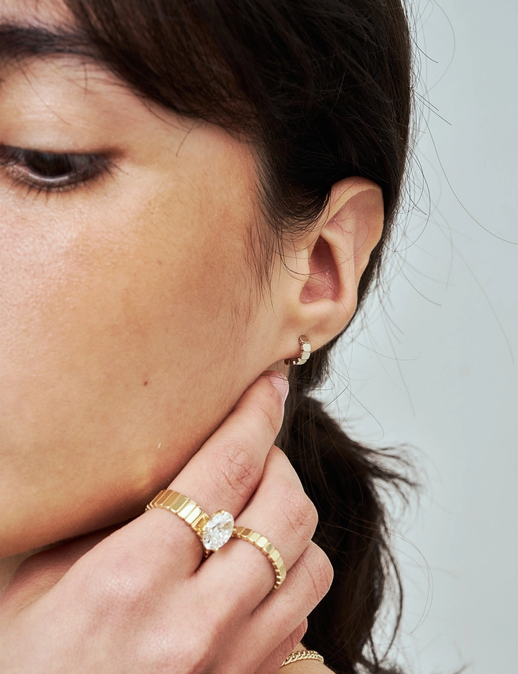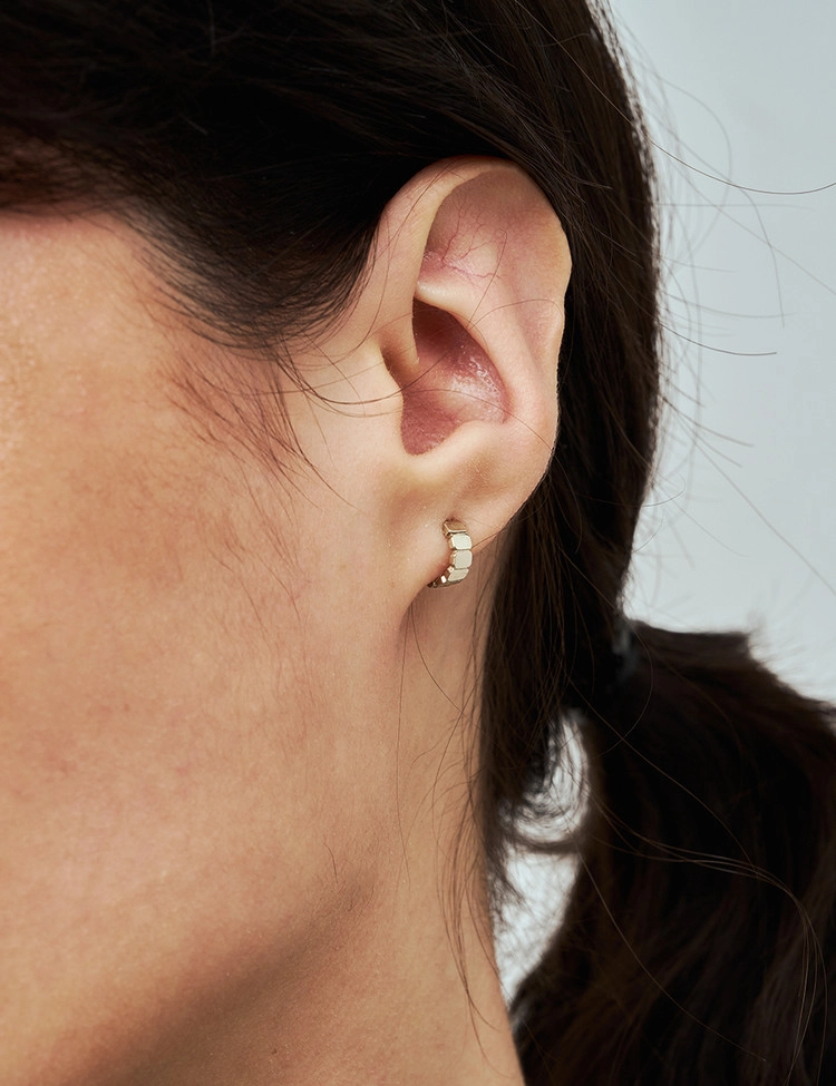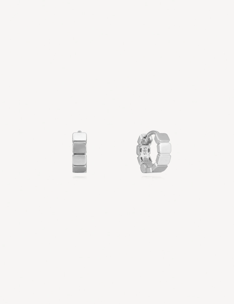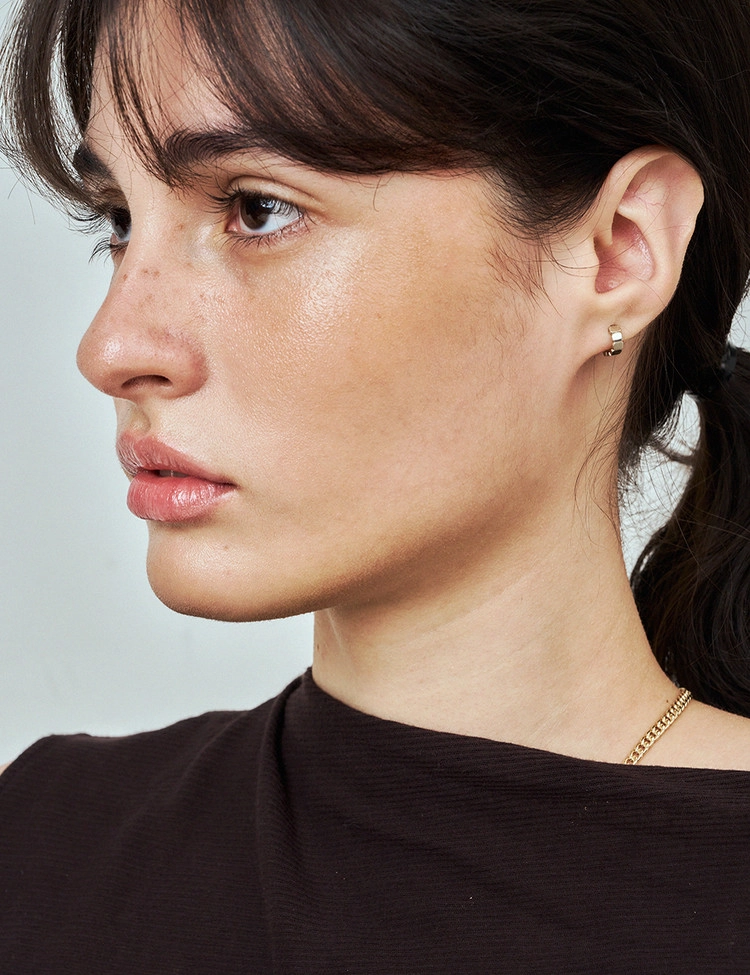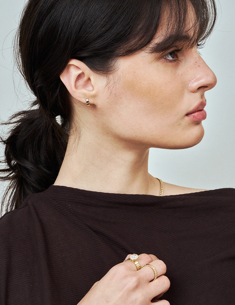 Born from an industrial-chic sensibility, the ROTOR Collection features square-edge banding and distinctive industrial patterns. This S-size hoop sits close to the ear—an easy everyday essential. Perfect as a second earring or layered with multiple piercings.