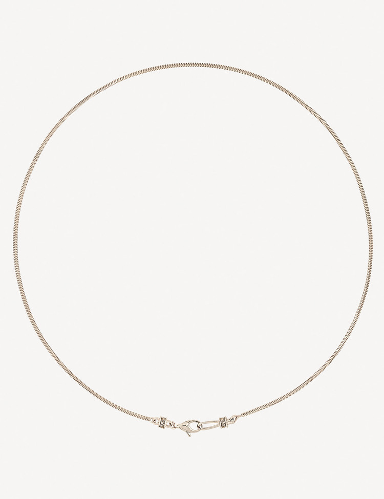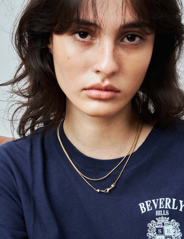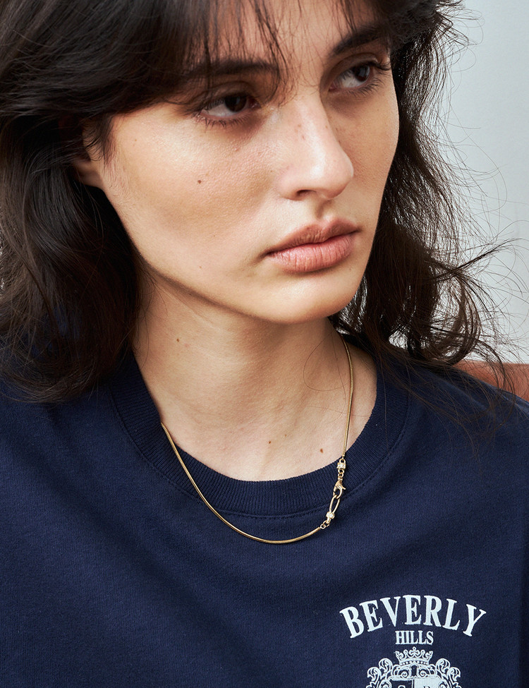 단독 또는 레이어드로도 활용도가 높은 에센셜 아이템입니다. 이 네크리스는 이비니시의 시그니처 모티브를 바탕으로 클래스프와 후크 디테일을 새롭게 재해석해 완성했습니다.