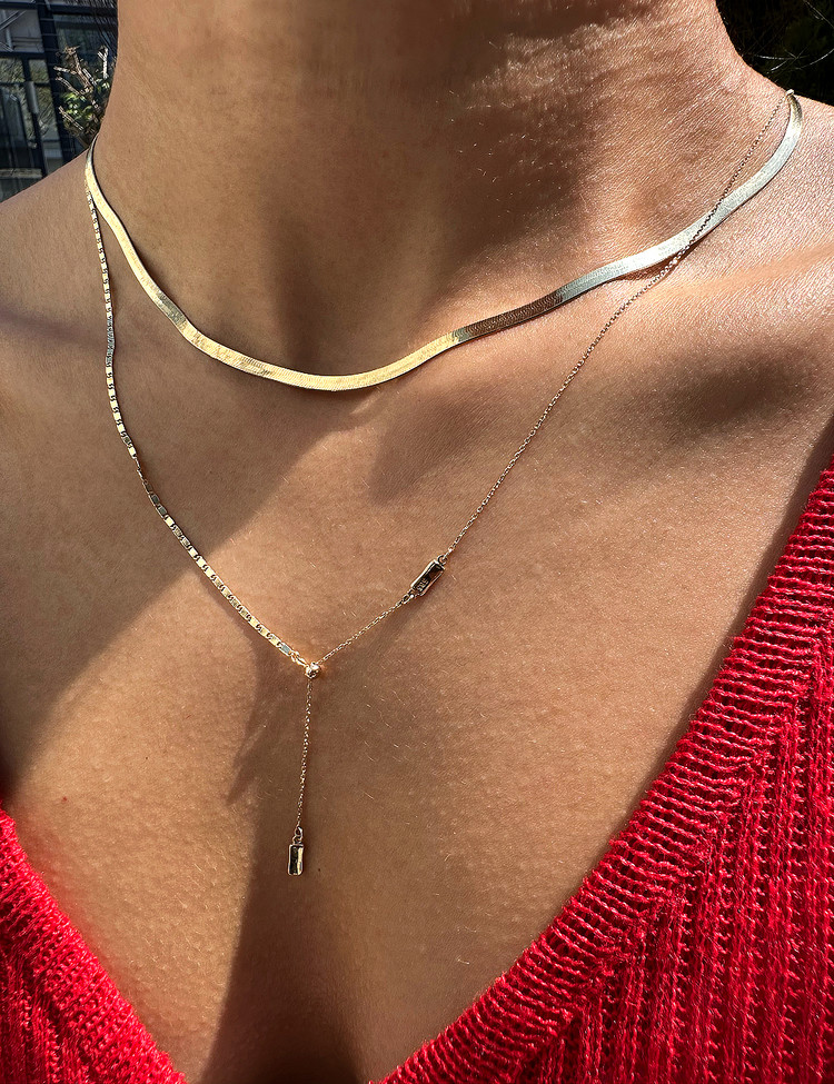 14k 18k 플랫 헤링본 스네이크 체인 목걸이