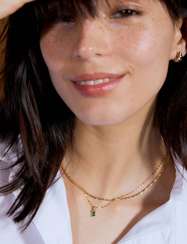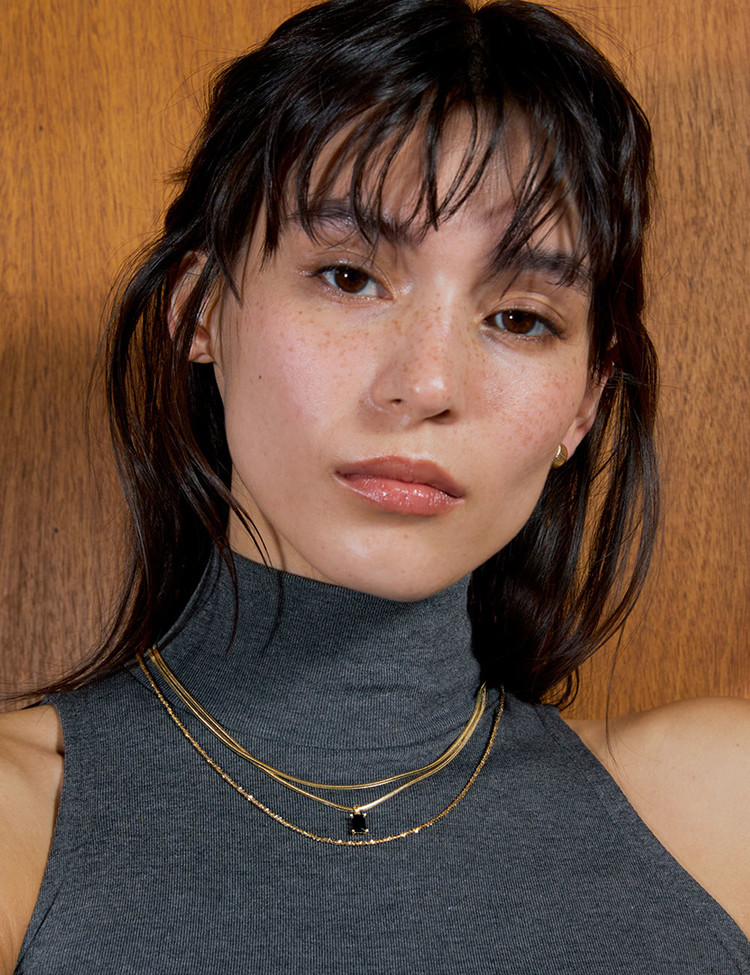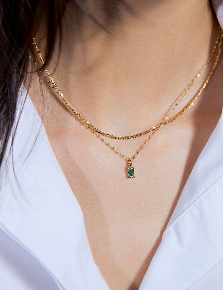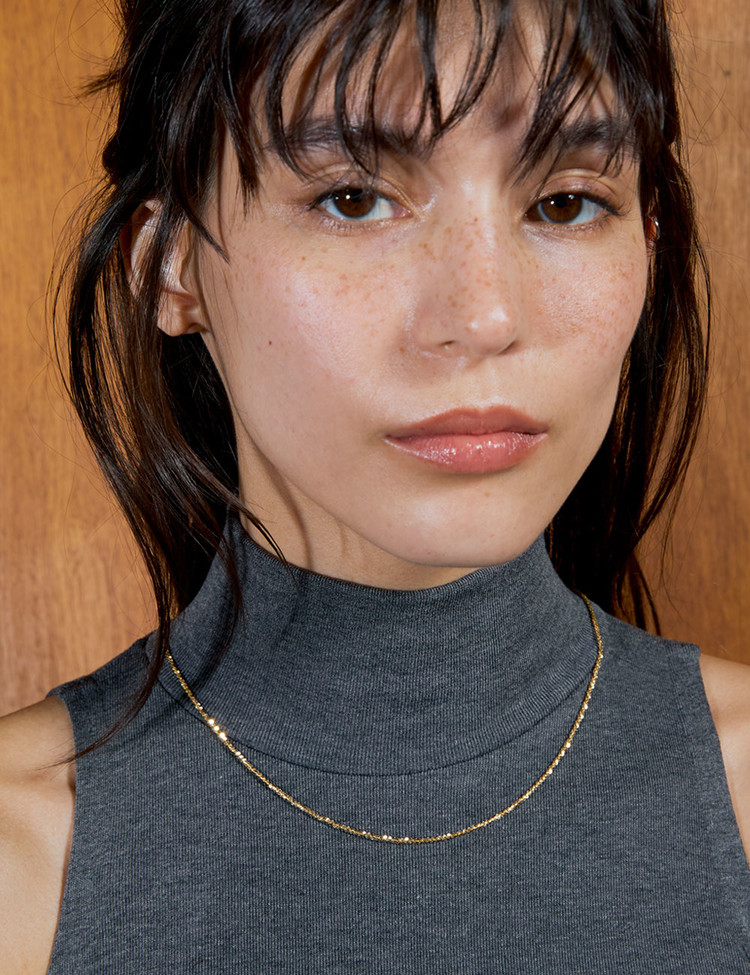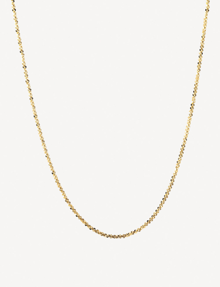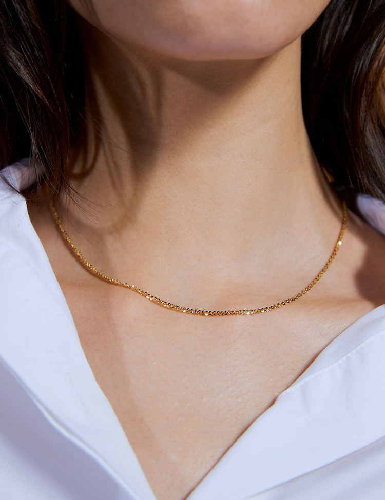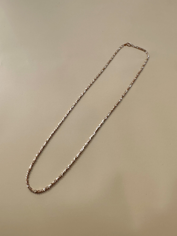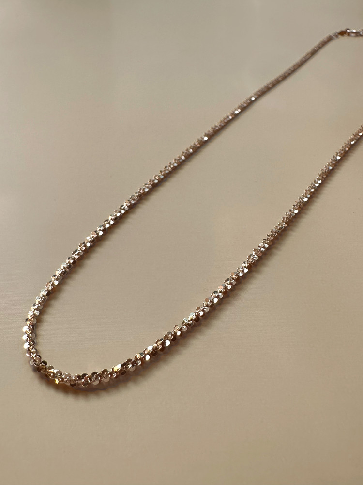 메탈 링크가 여러 겹으로 짜여진 스파클링 체인이 매력적이며 빛의 각도에 따라 다양한 반짝임을 선사하는 로맨틱 디자인의 네크리스입니다.
