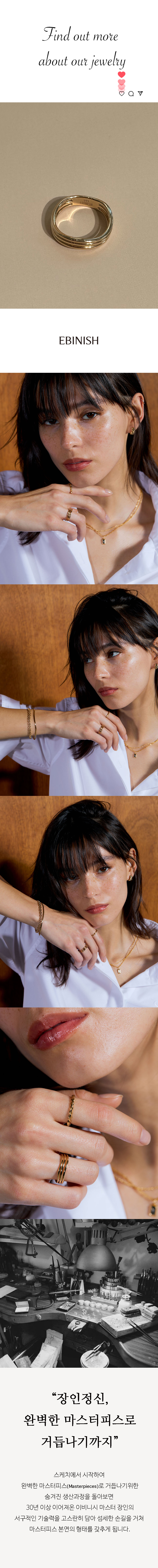 이비니시 리비드 컬렉션은 입체적인 각도와 웨이브 라인이 만들어내는 클래식함이 시선을 사로잡습니다. 매력적이고 스타일리쉬한 이 링은 어떤 룩에도 클래식한 매력을 더해줍니다.