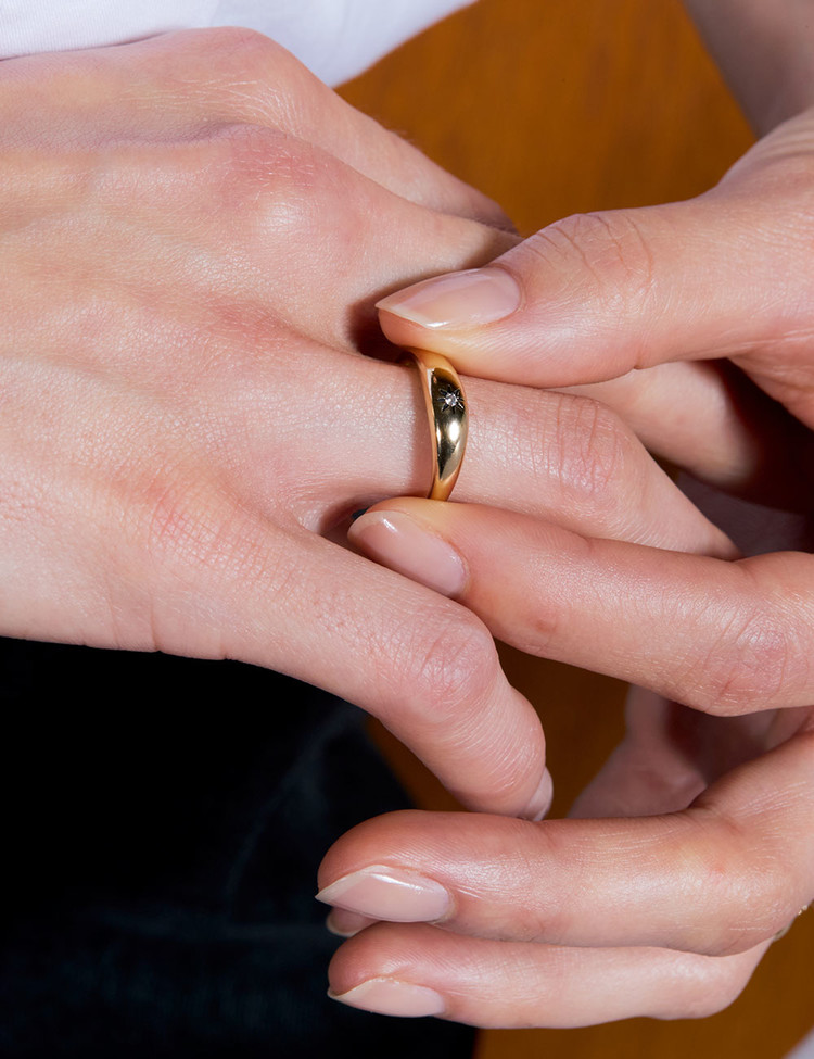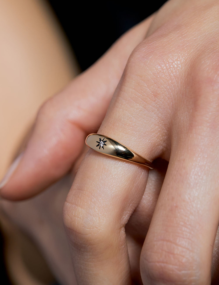 이비니시 스타 패싯 컬렉션은 핀란드 오로라 메커니즘에서 영감을 받았습니다. 반짝임을 선사하는 스타컷 빈티지 디자인이 특징이며, 전문가의 손길을 통해 정교하게 핸드 세팅되었습니다. 반지 표면에 있는 스타 패싯이 특징입니다.