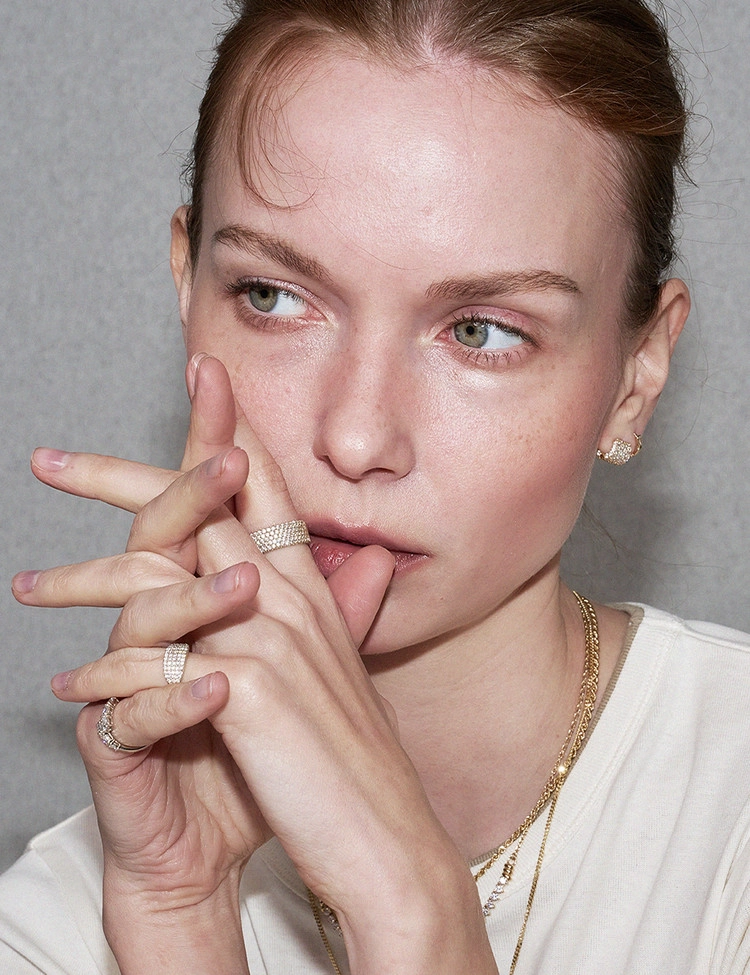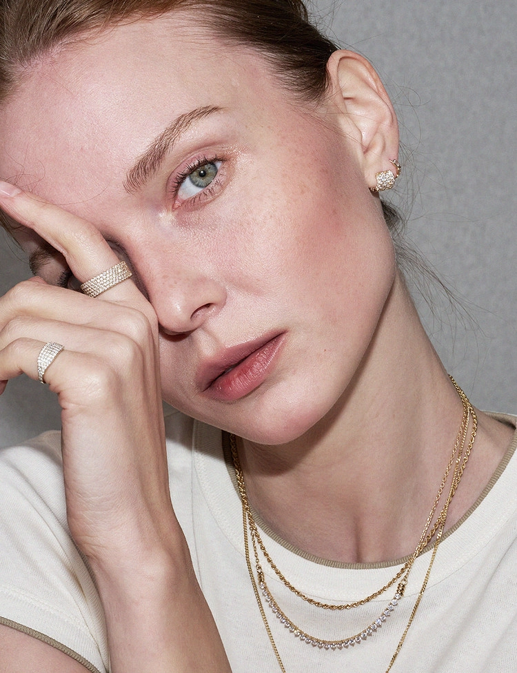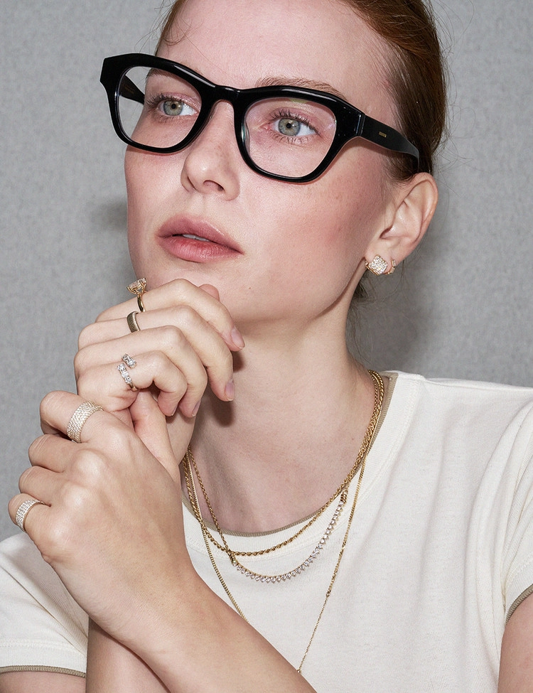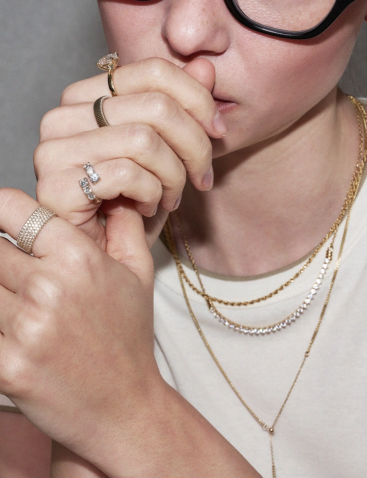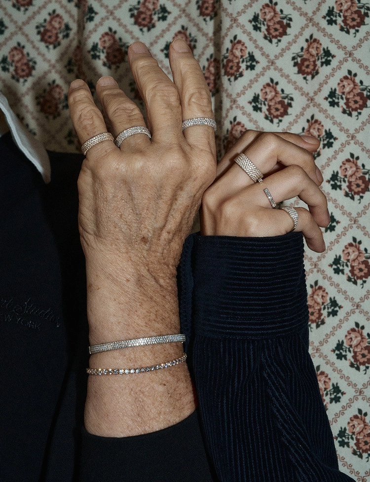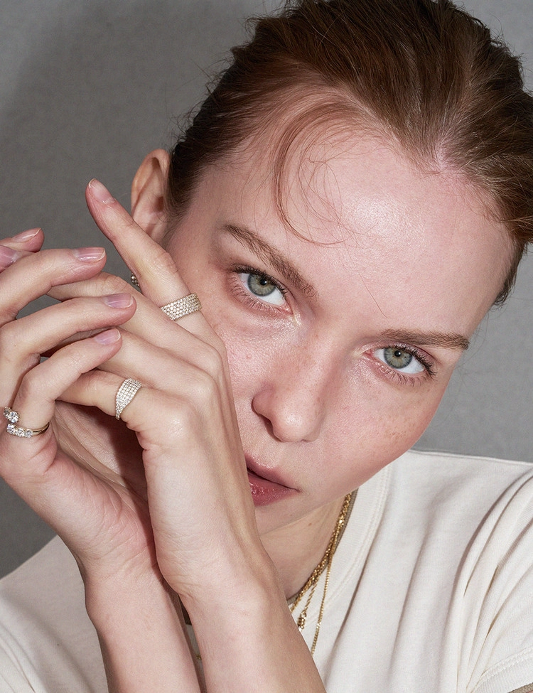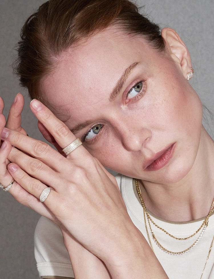 308여개 스톤을 파베 세팅해 화려한 반짝임을 만드는 360 올어라운드 스트랜드 솔라 링은 프레임 사이드까지 정교하게 세팅된 디자인이 특징이며, 일반 파베세팅 이어링 보다 더 우아하고 센슈얼한 룩을 완성할 수 있게 디자인 되었습니다. 이 링은 유행을 타지 않는 우아한 룩을 완성할 수 있다고 자부합니다.