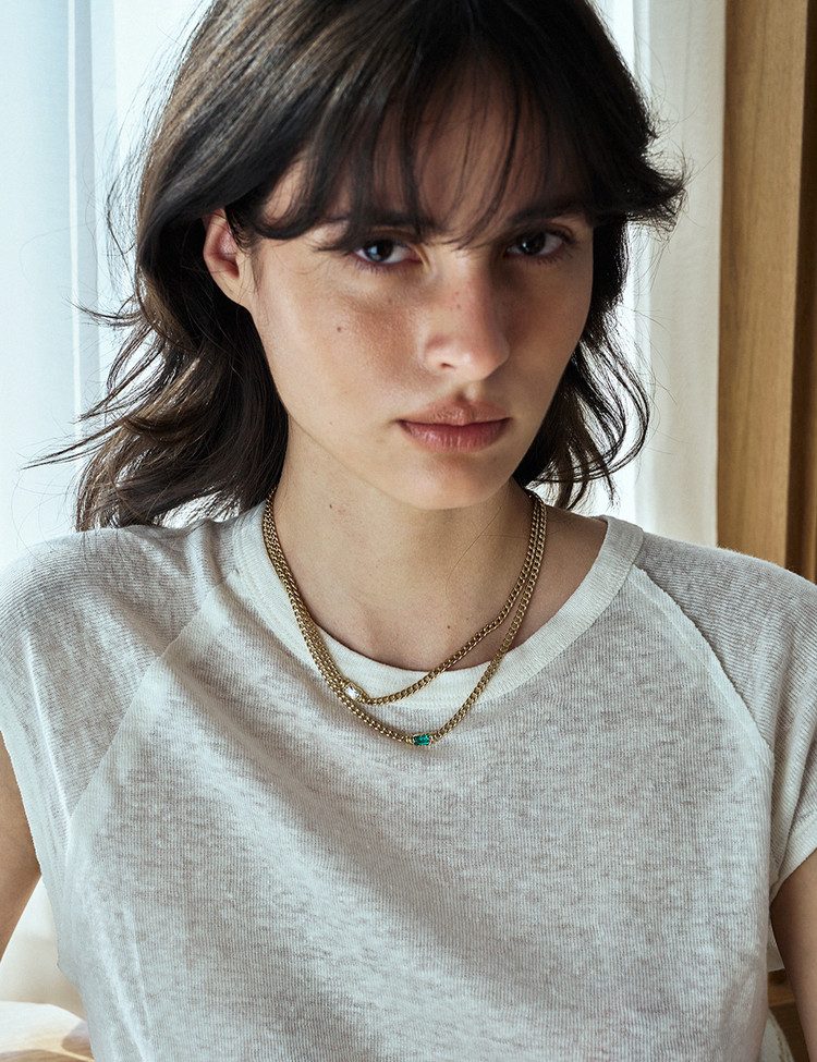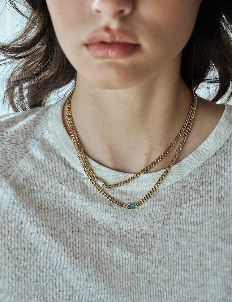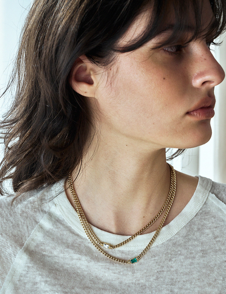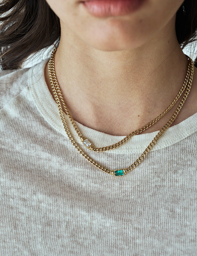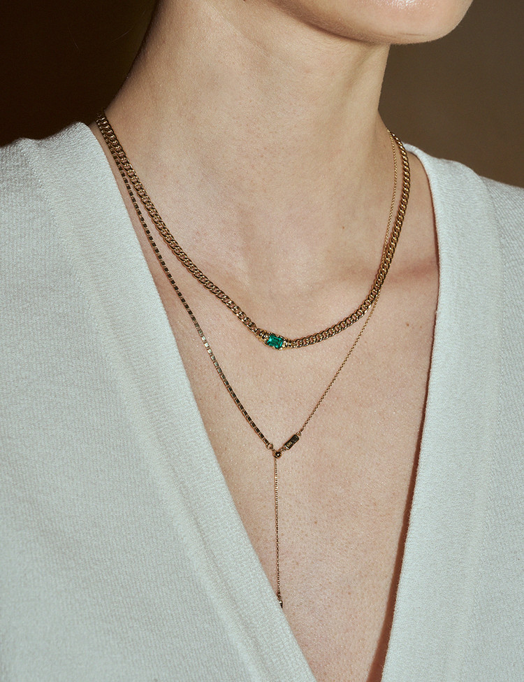 우아한 곡선을 자랑하는 리턴투 빈티지 클래식 볼드 네크리스는 모던하면서도 시대를 초월한 아름다움을 자랑합니다. 단독 착용하거나 다른 주얼리와 페어링하여 클래식 실루엣을 완성해 보세요. 랩에메랄드 세팅과 옐로우 골드 매칭이 캐주얼하면서도 멋스러운 디자인으로 단독 착용만으로도 시선을 모아주는 목걸이입니다.