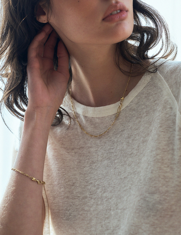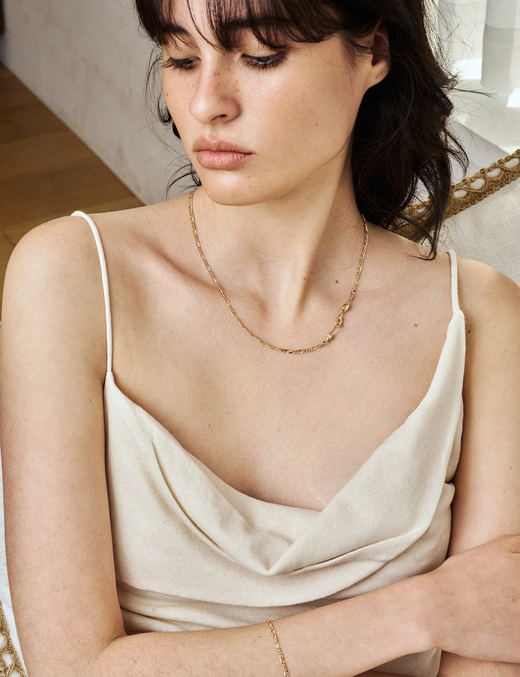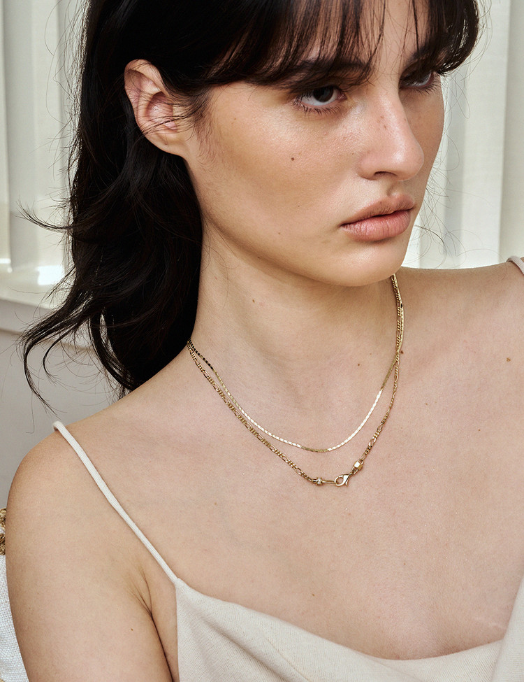 Crafted with ebinish’s signature motif, this necklace reinterprets the clasp and hook with a refined new design. Subtle chain variations let one accent transform the entire mood—perfect for minimal looks, and even better layered. Discover the Return to Linked Series.
