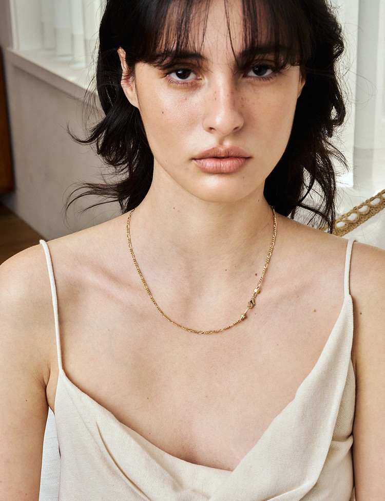 단독 또는 레이어드로도 활용도가 높은 에센셜 아이템입니다. 이 네크리스는 이비니시의 시그니처 모티브를 바탕으로 클래스프와 후크 디테일을 새롭게 재해석해 완성했습니다.